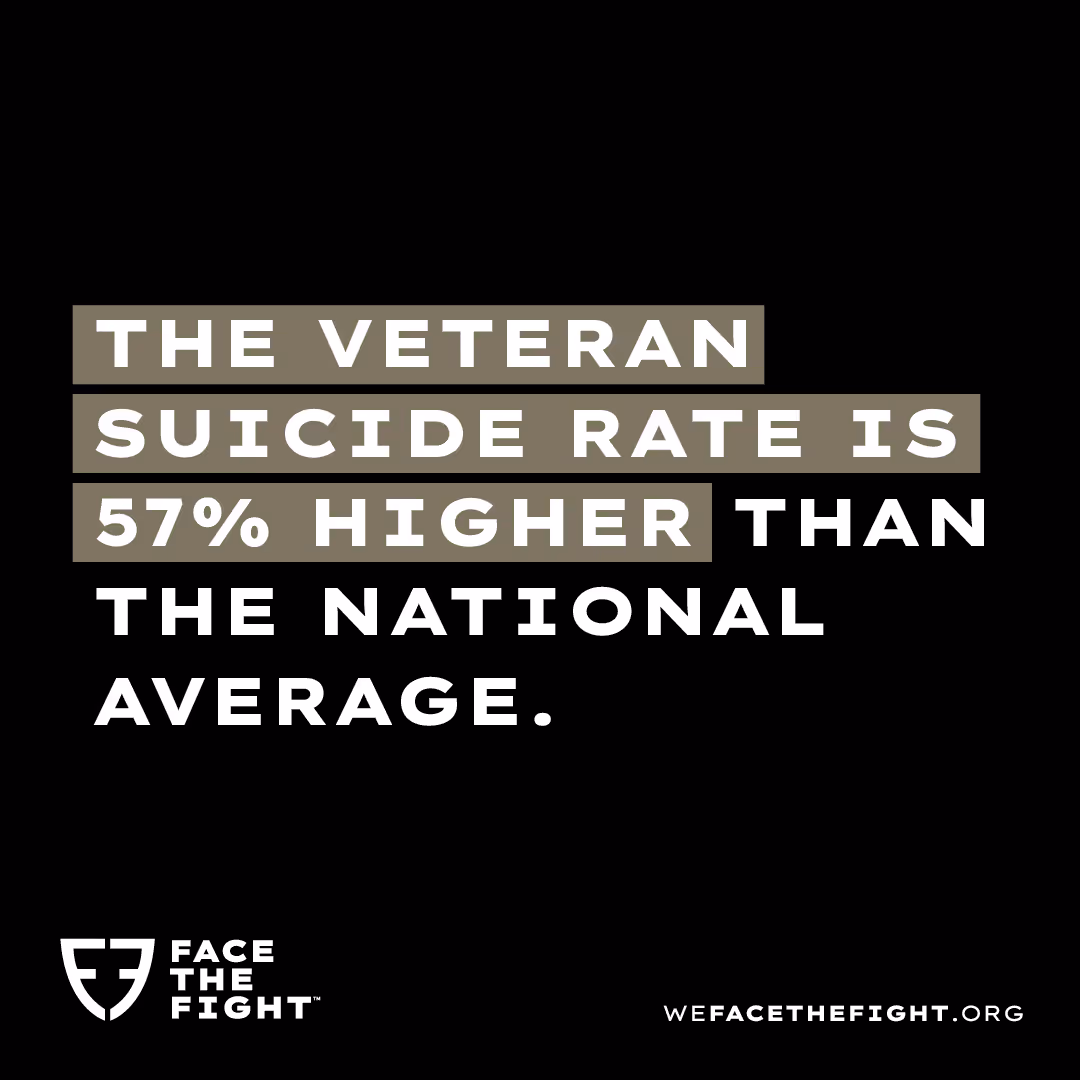 The realities of veteran suicide are shocking. Through Face the Fight, we’re working to break the stigma surrounding suicide in the military community by raising awareness and fostering real, open conversations around support and hope.